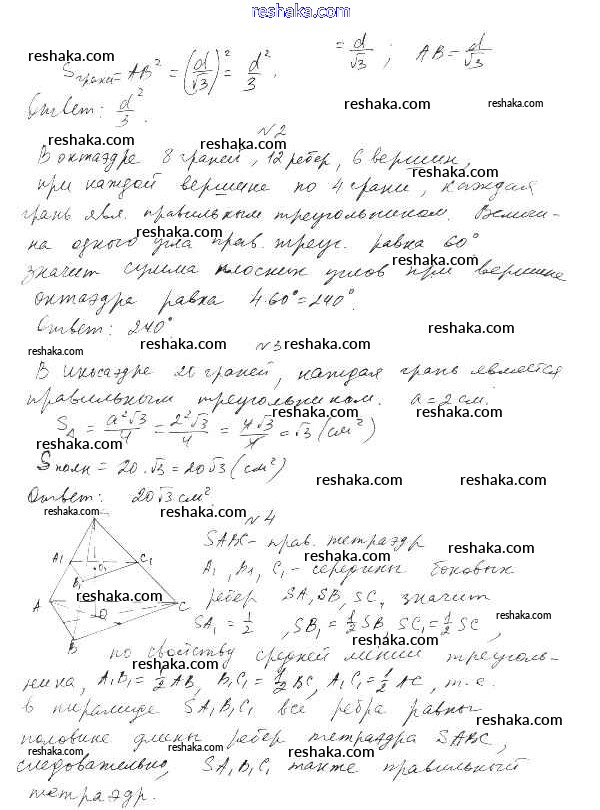 Решака - онлайн ответы Геометрия Ершова, Голобородько за 11 класс Самостоятельные и контрольные работы ФГОС 2004 - А2