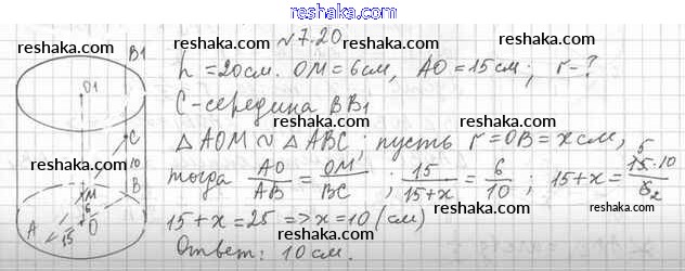Представляем вам сборники по Геометрии, с готовыми ответами к Учебнику Мерзляк школьной программы для учеников одиннадцатый класса. Это не просто гдз с ответом, а с подсказками, как верно решить §7. Цилиндр 7.20. Проверяй домашку с умом и получай высший балл!