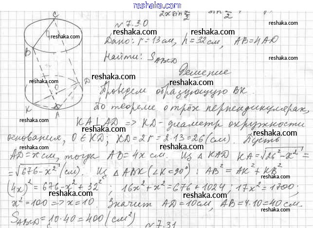 Представляем вам сборники по Геометрии, с готовыми ответами к Учебнику Мерзляк школьной программы для учеников одиннадцатый класса. Это не просто гдз с ответом, а с подсказками, как верно решить §7. Цилиндр 7.30. Проверяй домашку с умом и получай высший балл!