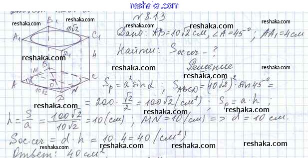 Представляем вам сборники по Геометрии, с готовыми ответами к Учебнику Мерзляк школьной программы для учеников одиннадцатый класса. Это не просто гдз с ответом, а с подсказками, как верно решить §8. Комбинации цилиндра и призмы 8.13. Проверяй домашку с умом и получай высший балл!