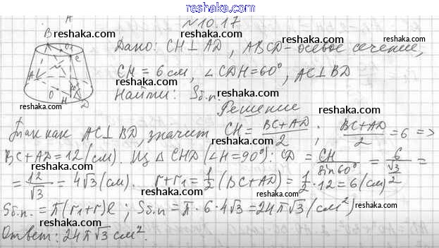 Представляем вам сборники по Геометрии, с готовыми ответами к Учебнику Мерзляк школьной программы для учеников одиннадцатый класса. Это не просто гдз с ответом, а с подсказками, как верно решить §10. Усечённый конус 10.17. Проверяй домашку с умом и получай высший балл!