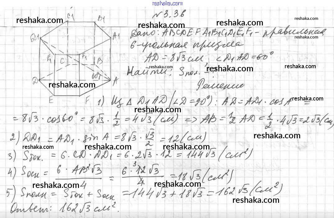 Решака - онлайн ответы Геометрия Мерзляк, Номировский за 11 класс Учебник Базовый уровень ФГОС 2019 - 3.36