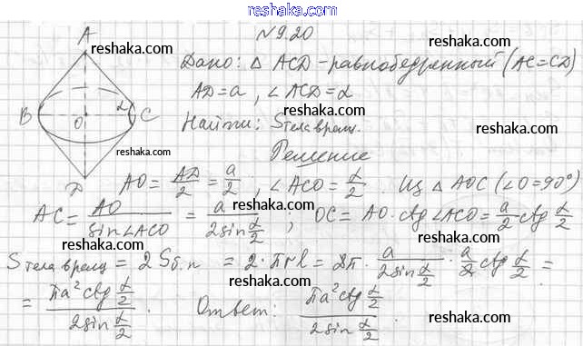 Решака - онлайн ответы Геометрия Мерзляк, Номировский за 11 класс Учебник Базовый уровень ФГОС 2019 - 9.20