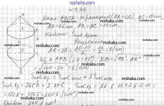 Представляем вам сборники по Геометрии, с готовыми ответами к Учебнику Мерзляк школьной программы для учеников одиннадцатый класса. Это не просто гдз с ответом, а с подсказками, как верно решить §9. Конус 9.24. Проверяй домашку с умом и получай высший балл!