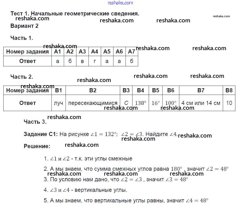Решака - онлайн ответы Геометрия Фарков за 7 класс Тесты ФГОС 2015 - 2