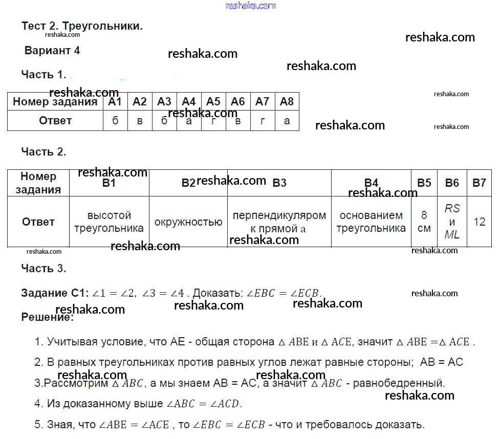 Решака - онлайн ответы Геометрия Фарков за 7 класс Тесты ФГОС 2015 - 4