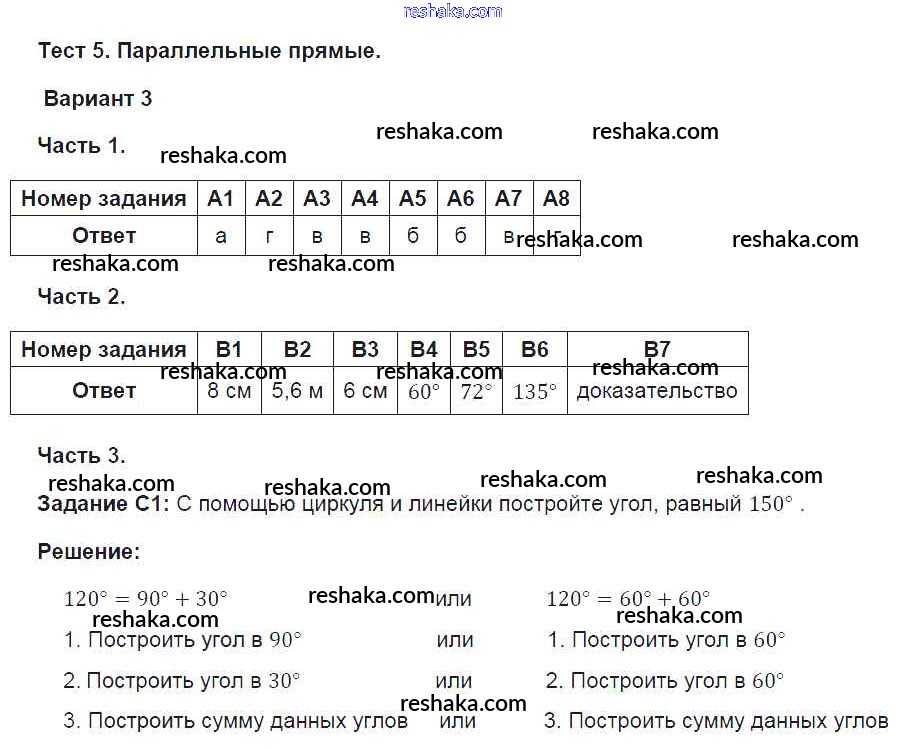 Решака - онлайн ответы Геометрия Фарков за 7 класс Тесты ФГОС 2015 - 3
