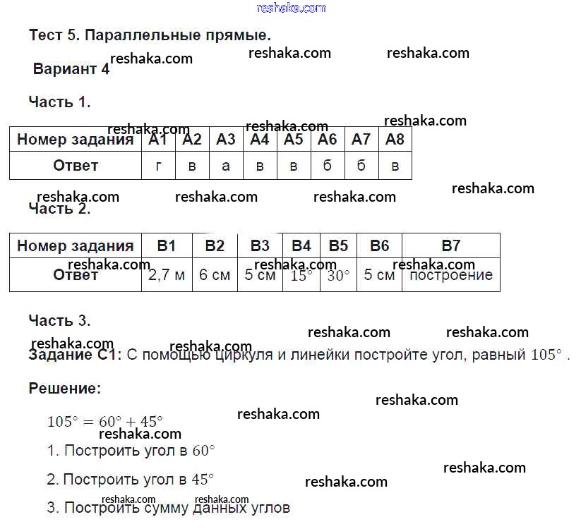 Решака - онлайн ответы Геометрия Фарков за 7 класс Тесты ФГОС 2015 - 4