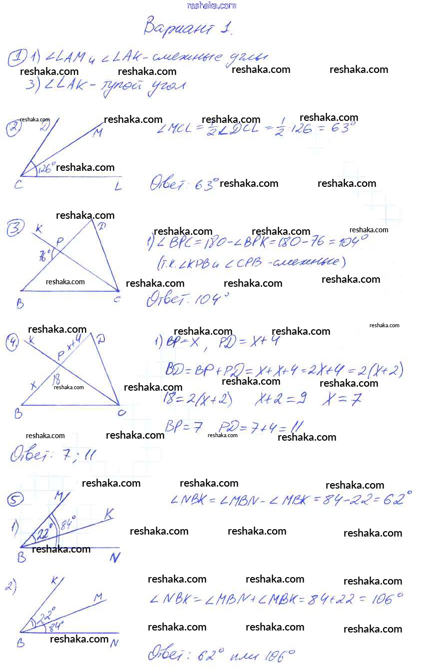 Решака - онлайн ответы Геометрия Мельникова за 7 класс Контрольные работы ФГОС 2016 - 1