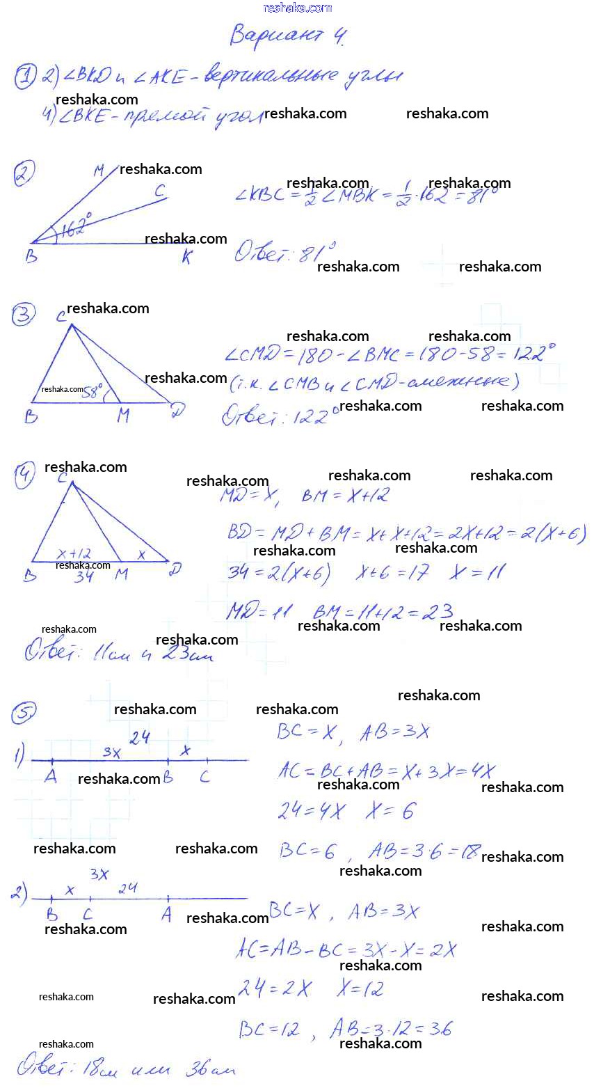 Решака - онлайн ответы Геометрия Мельникова за 7 класс Контрольные работы ФГОС 2016 - 4