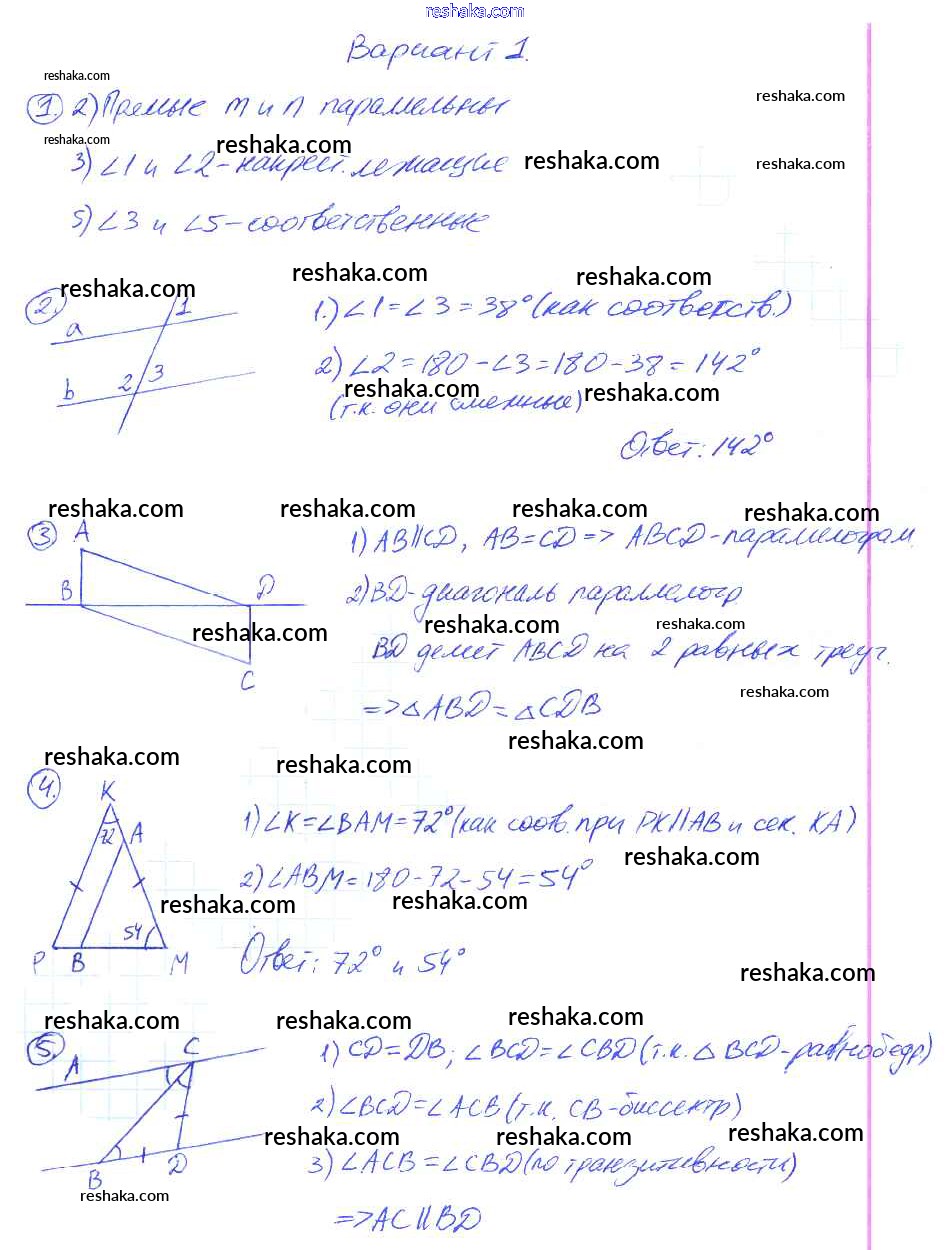 Решака - онлайн ответы Геометрия Мельникова за 7 класс Контрольные работы ФГОС 2016 - 1