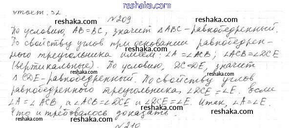 Представляем вам сборники по Геометрии, с готовыми ответами к Учебнику Мерзляк школьной программы для учеников седьмой класса. Это не просто гдз с ответом, а с подсказками, как верно решить §9. Равнобедренный треугольник и его свойства Глава 2. Треугольники 209. Проверяй домашку с умом и получай высший балл!