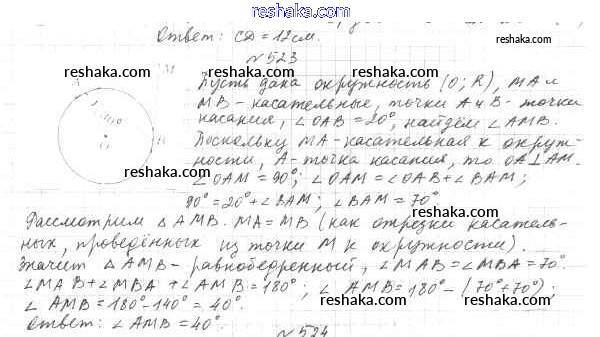 Представляем вам сборники по Геометрии, с готовыми ответами к Учебнику Мерзляк школьной программы для учеников седьмой класса. Это не просто гдз с ответом, а с подсказками, как верно решить §20. Некоторые свойства окружности. Касательная к окружности Глава 4. Окружность и круг. Геометрические построения 523. Проверяй домашку с умом и получай высший балл!