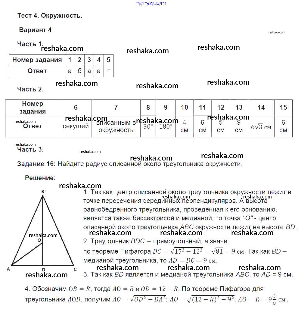 Решака - онлайн ответы Геометрия Фарков за 8 класс Тесты ФГОС 2014 - вариант №4