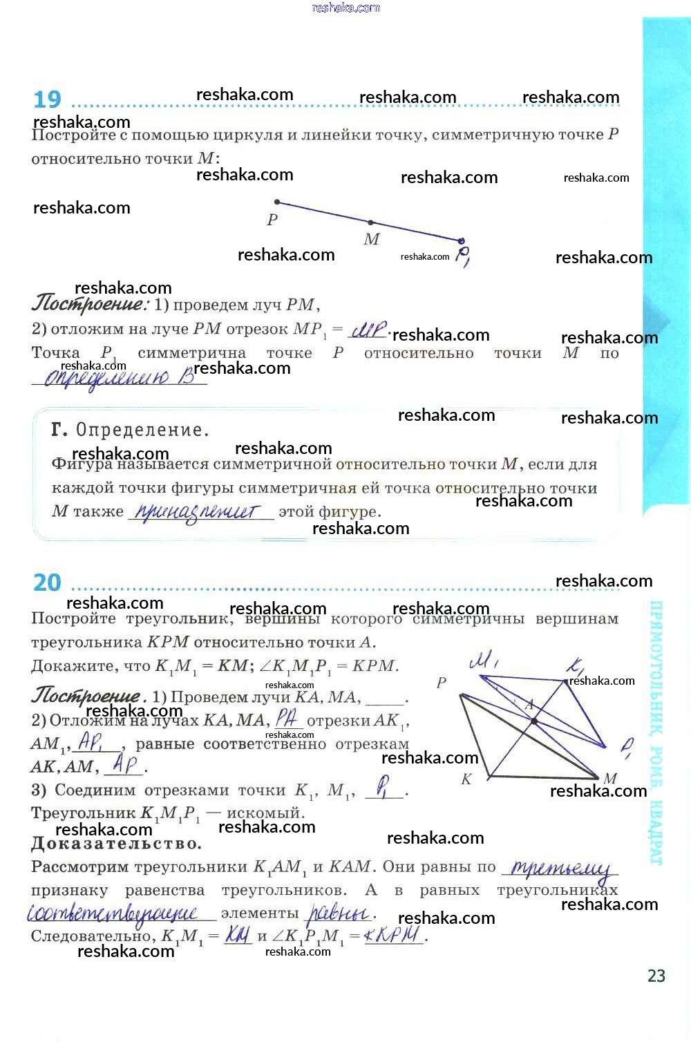 Решака - онлайн ответы Геометрия Глазков, Камаев за 8 класс Рабочая тетрадь ФГОС 2017 - стр. 23