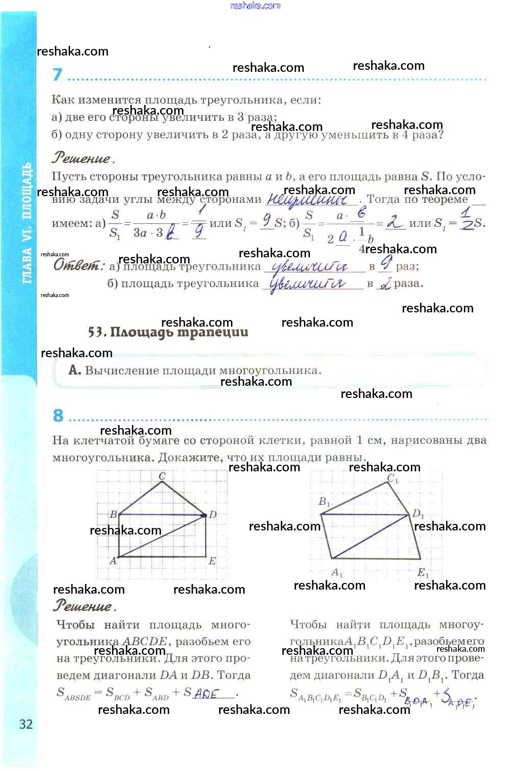 Представляем вам сборники по Геометрии, с готовыми ответами к Рабочей тетради Глазков школьной программы для учеников восьмой класса. Это не просто гдз с ответом, а с подсказками, как верно решить Глава VI. Площадь стр. 32. Проверяй домашку с умом и получай высший балл!