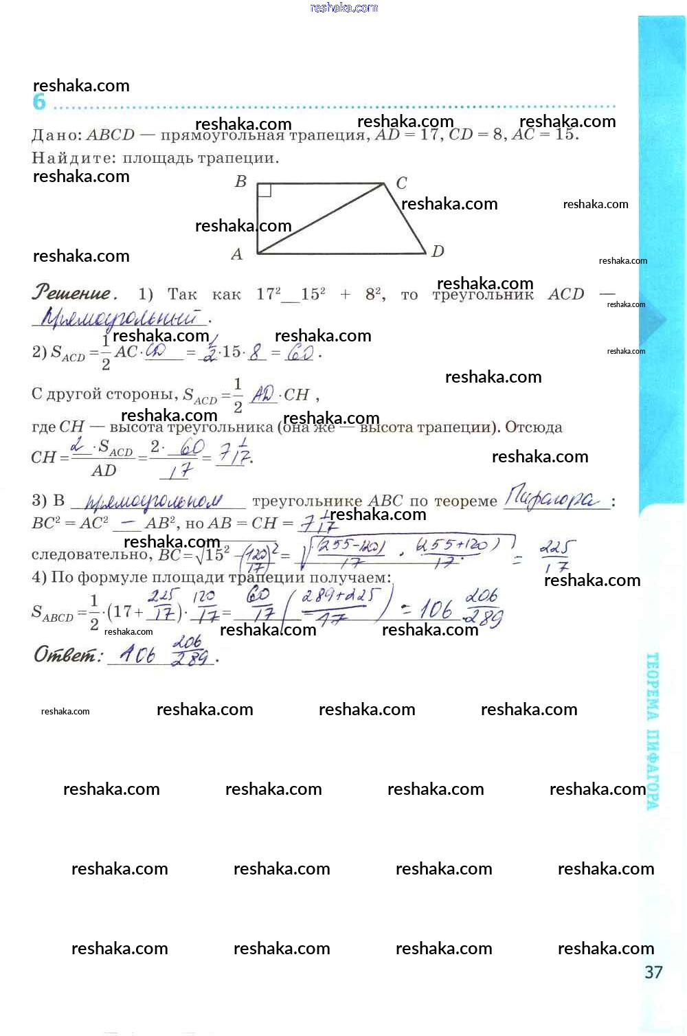 Решака - онлайн ответы Геометрия Глазков, Камаев за 8 класс Рабочая тетрадь ФГОС 2017 - стр. 37