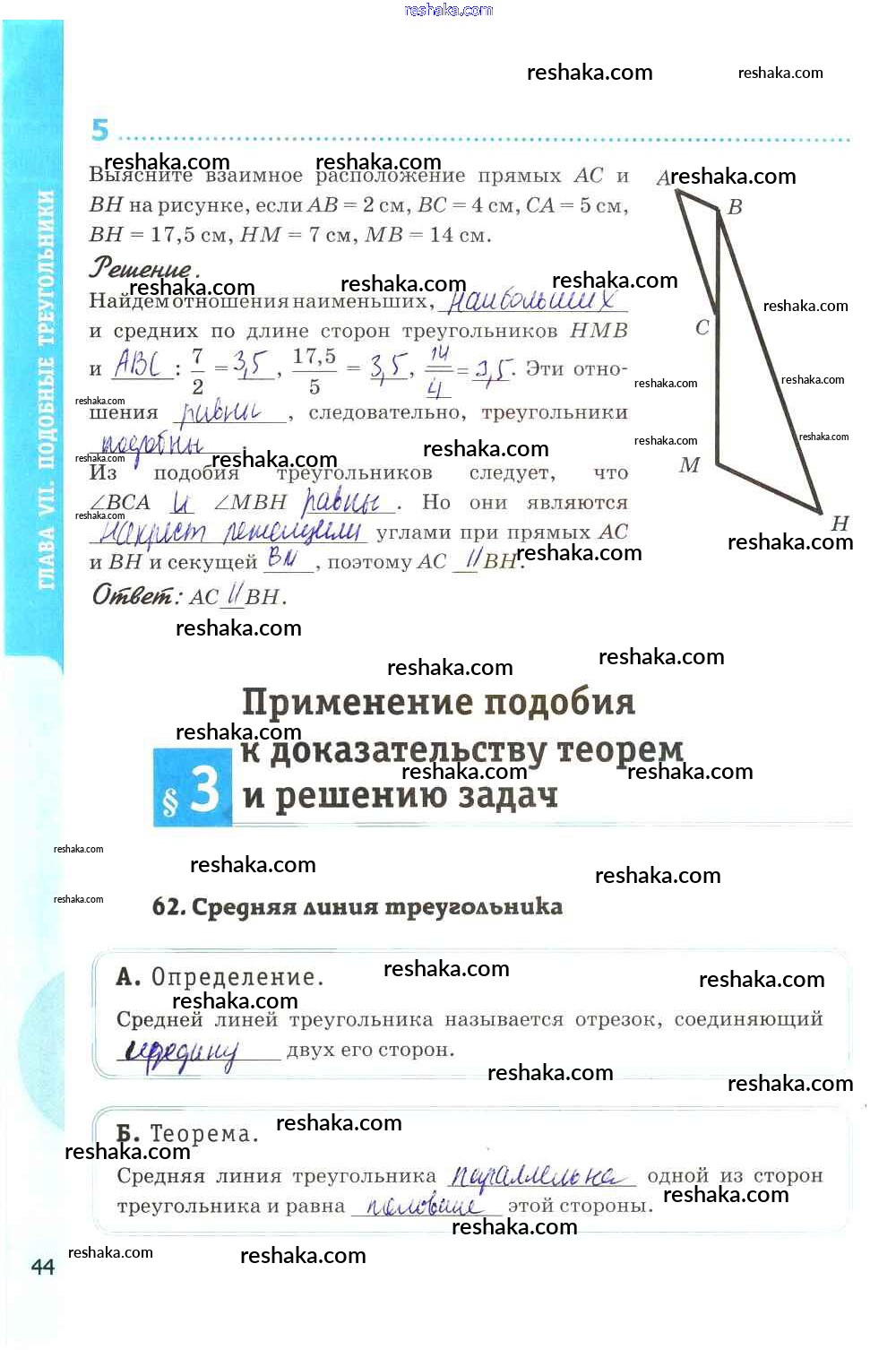 Представляем вам сборники по Геометрии, с готовыми ответами к Рабочей тетради Глазков школьной программы для учеников восьмой класса. Это не просто гдз с ответом, а с подсказками, как верно решить Глава VII. Подобные треугольники стр. 44. Проверяй домашку с умом и получай высший балл!