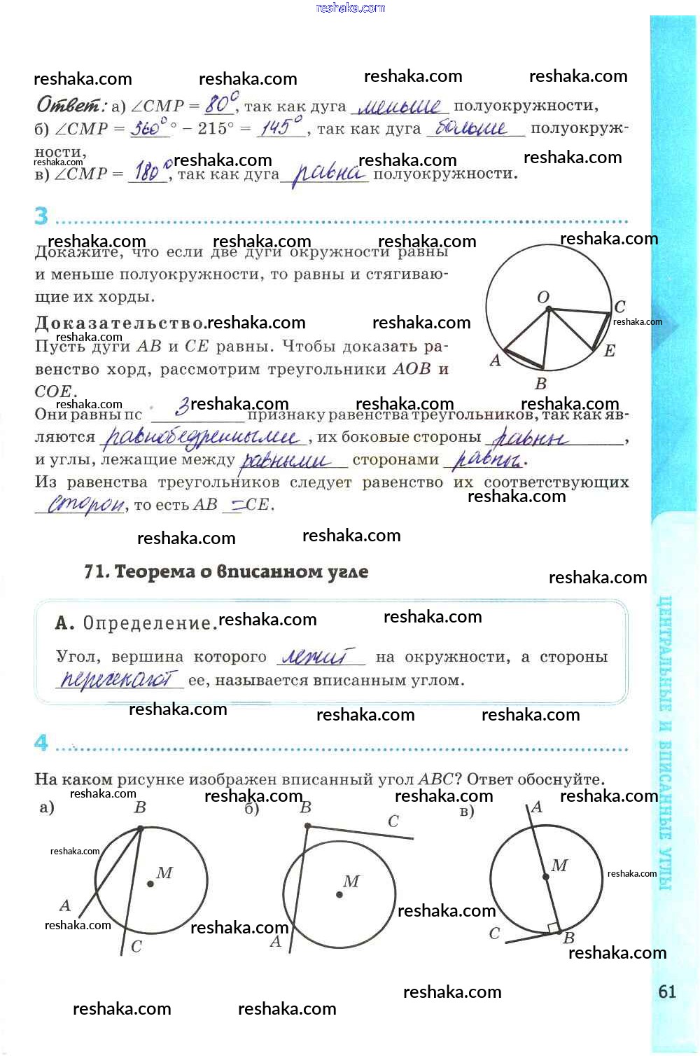 Решака - онлайн ответы Геометрия Глазков, Камаев за 8 класс Рабочая тетрадь ФГОС 2017 - стр. 61