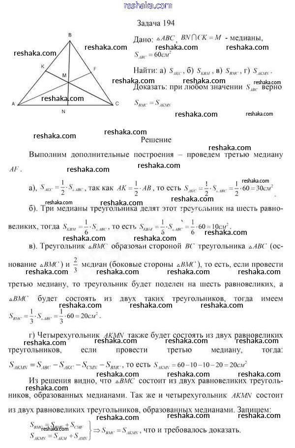 Решака - онлайн ответы Геометрия Казаков за 8 класс Учебник 2018 - 194