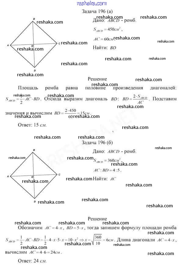 Решака - онлайн ответы Геометрия Казаков за 8 класс Учебник 2018 - 196