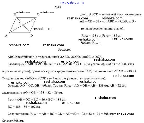 Решака - онлайн ответы Геометрия Казаков за 8 класс Учебник 2018 - 43