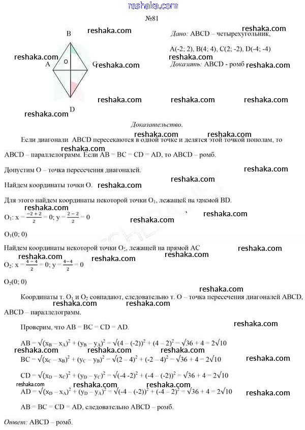 Решака - онлайн ответы Геометрия Казаков за 8 класс Учебник 2018 - 81