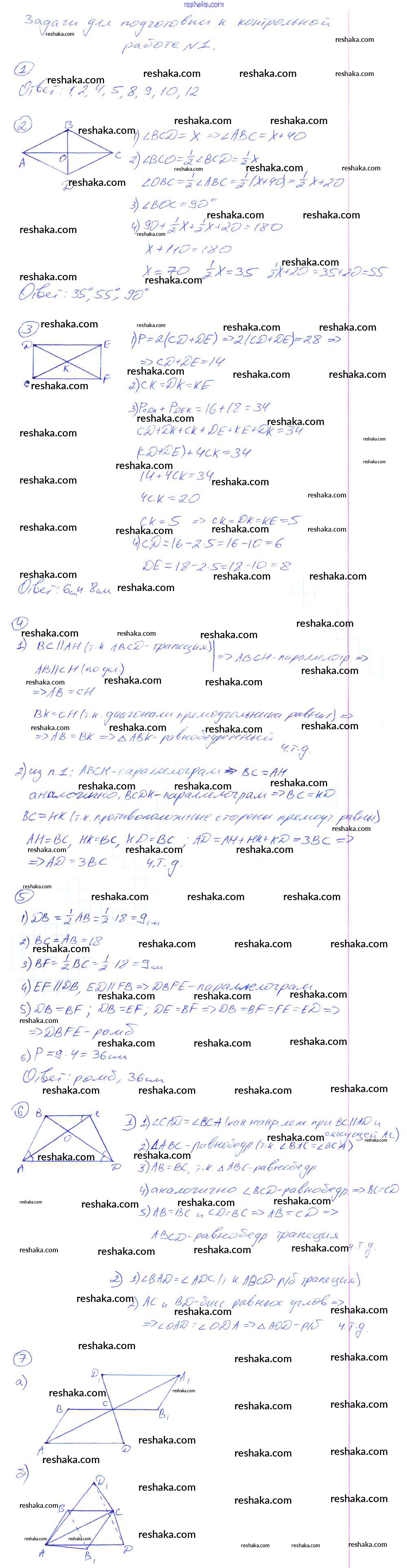кр-1. Четырехугольники / задачи для подготовки к контрольной работе