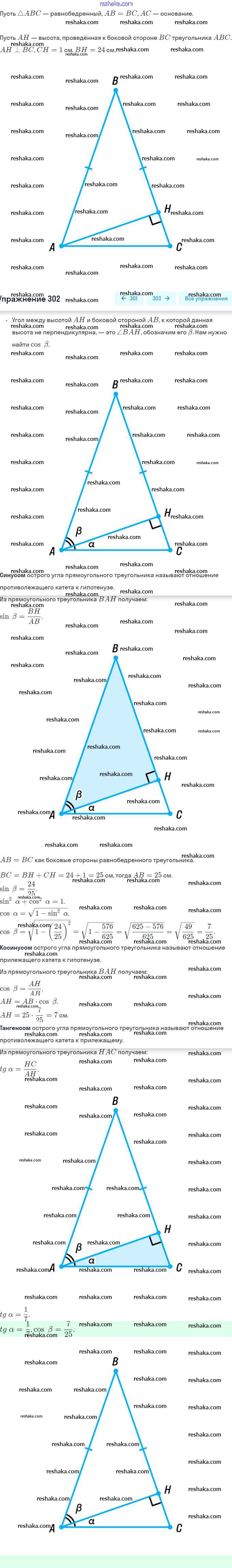 Представляем вам сборники по Геометрии, с готовыми ответами к Рабочей тетради Мерзляк школьной программы для учеников восьмой класса. Это не просто гдз с ответом, а с подсказками, как верно решить §17. Тригонометрические функции острого угла прямоугольного треугольника 302. Проверяй домашку с умом и получай высший балл!