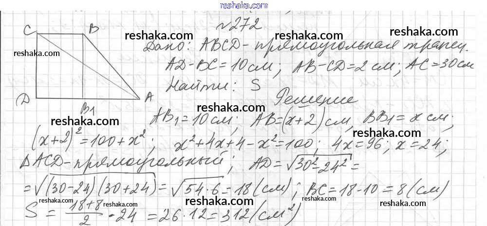 Представляем вам сборники по Геометрии, с готовыми ответами к Дидактическим материалам Мерзляк школьной программы для учеников восьмой класса. Это не просто гдз с ответом, а с подсказками, как верно решить Вариант 1 Упражнения 272. Проверяй домашку с умом и получай высший балл!