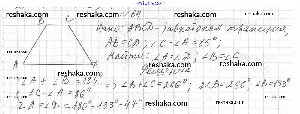 Решака - онлайн ответы Геометрия Мерзляк, Полонский за 8 класс Дидактические материалы ФГОС 2017 - 64