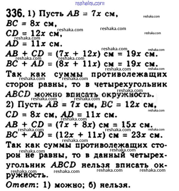 Решака - онлайн ответы Геометрия Мерзляк, Полонский за 8 класс Учебник ФГОС 2015 - 336