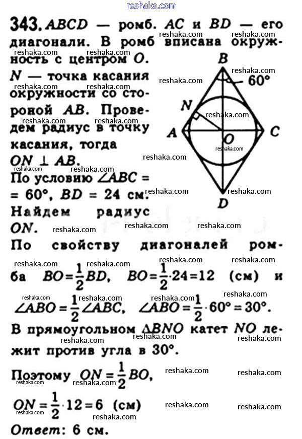 Решака - онлайн ответы Геометрия Мерзляк, Полонский за 8 класс Учебник ФГОС 2015 - 343