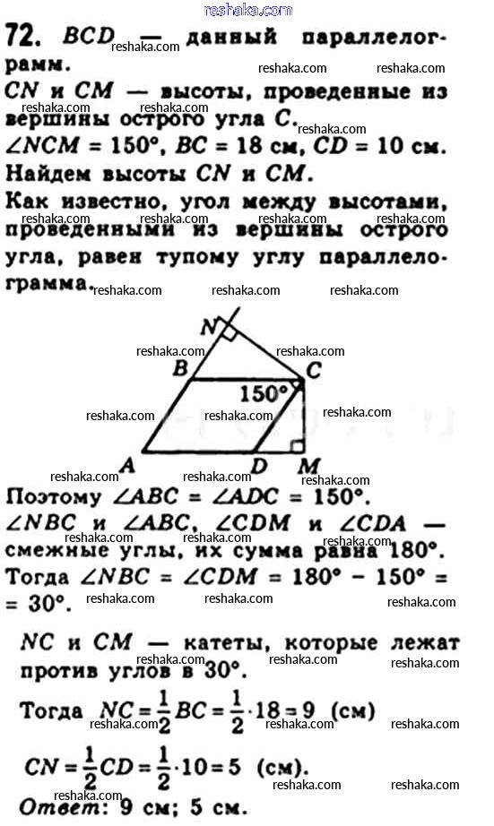 Решака - онлайн ответы Геометрия Мерзляк, Полонский за 8 класс Учебник ФГОС 2015 - 72