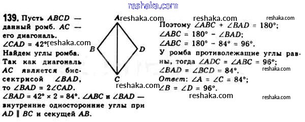 Представляем вам сборники по Геометрии, с готовыми ответами к Учебнику Мерзляк школьной программы для учеников восьмой класса. Это не просто гдз с ответом, а с подсказками, как верно решить § 5. Ромб Глава 1. Четырехугольники 139. Проверяй домашку с умом и получай высший балл!