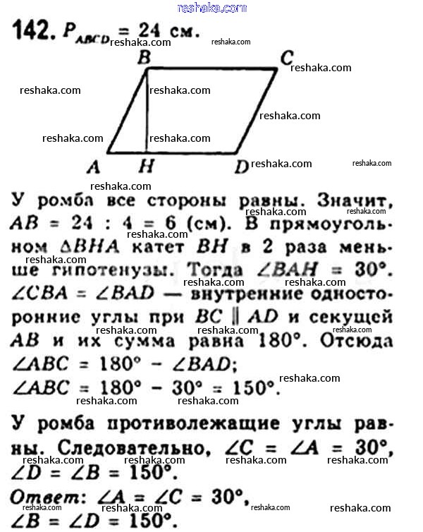 Решака - онлайн ответы Геометрия Мерзляк, Полонский за 8 класс Учебник ФГОС 2015 - 142