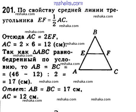 Представляем вам сборники по Геометрии, с готовыми ответами к Учебнику Мерзляк школьной программы для учеников восьмой класса. Это не просто гдз с ответом, а с подсказками, как верно решить § 7. Средняя линия треугольника Глава 1. Четырехугольники 201. Проверяй домашку с умом и получай высший балл!
