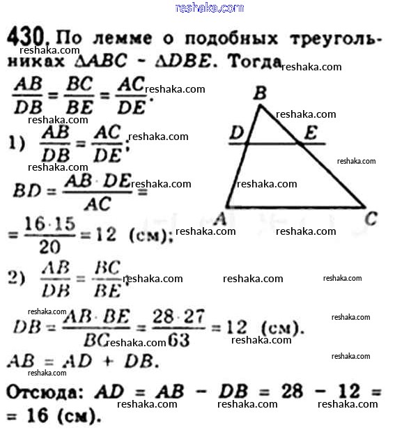 Представляем вам сборники по Геометрии, с готовыми ответами к Учебнику Мерзляк школьной программы для учеников восьмой класса. Это не просто гдз с ответом, а с подсказками, как верно решить § 12. Подобные треугольники. Лемма о подобных треугольниках Глава 2. Подобие треугольников 430. Проверяй домашку с умом и получай высший балл!