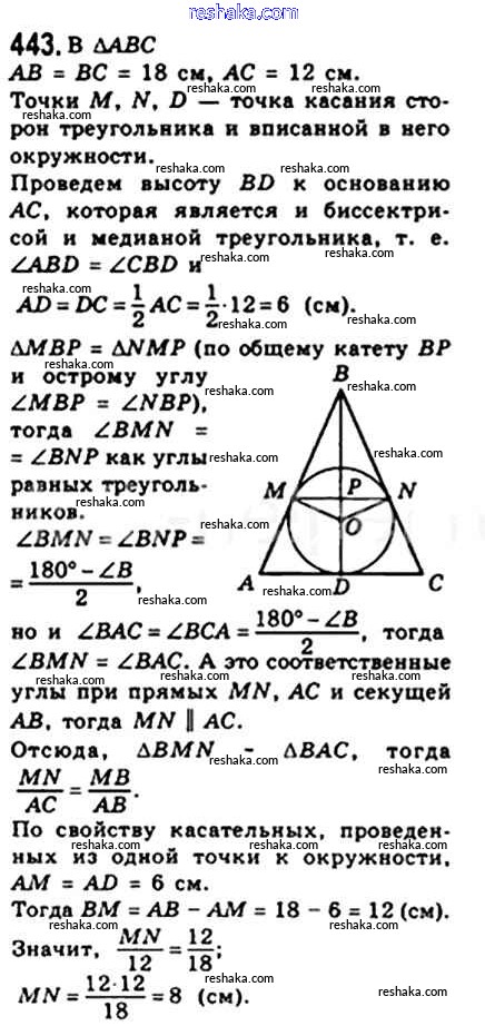 Решака - онлайн ответы Геометрия Мерзляк, Полонский за 8 класс Учебник ФГОС 2015 - 443