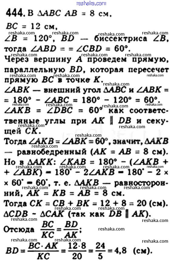 Решака - онлайн ответы Геометрия Мерзляк, Полонский за 8 класс Учебник ФГОС 2015 - 444