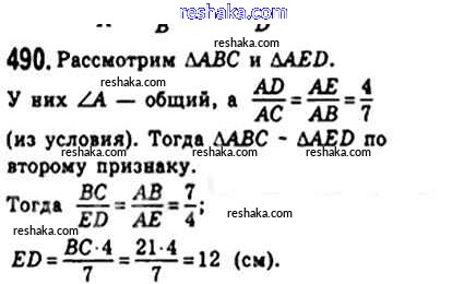Представляем вам сборники по Геометрии, с готовыми ответами к Учебнику Мерзляк школьной программы для учеников восьмой класса. Это не просто гдз с ответом, а с подсказками, как верно решить § 14. Второй и третий признак подобия треугольника Глава 2. Подобие треугольников 490. Проверяй домашку с умом и получай высший балл!
