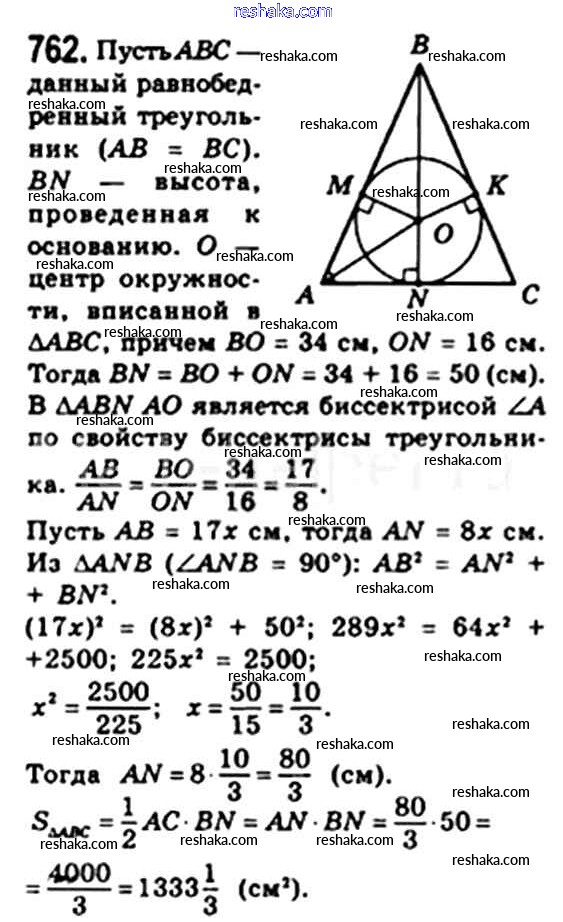 Решака - онлайн ответы Геометрия Мерзляк, Полонский за 8 класс Учебник ФГОС 2015 - 762