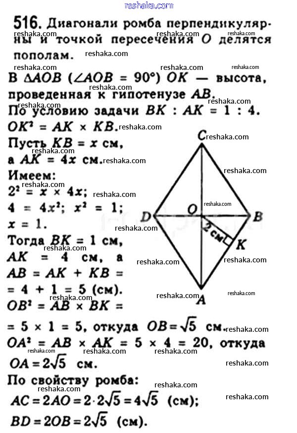 Решака - онлайн ответы Геометрия Мерзляк, Полонский за 8 класс Учебник ФГОС 2015 - 516