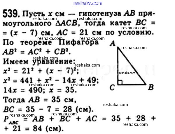 Представляем вам сборники по Геометрии, с готовыми ответами к Учебнику Мерзляк школьной программы для учеников восьмой класса. Это не просто гдз с ответом, а с подсказками, как верно решить § 16. Теорема Пифагора Глава 3. Решение прямоугольных треугольников 539. Проверяй домашку с умом и получай высший балл!