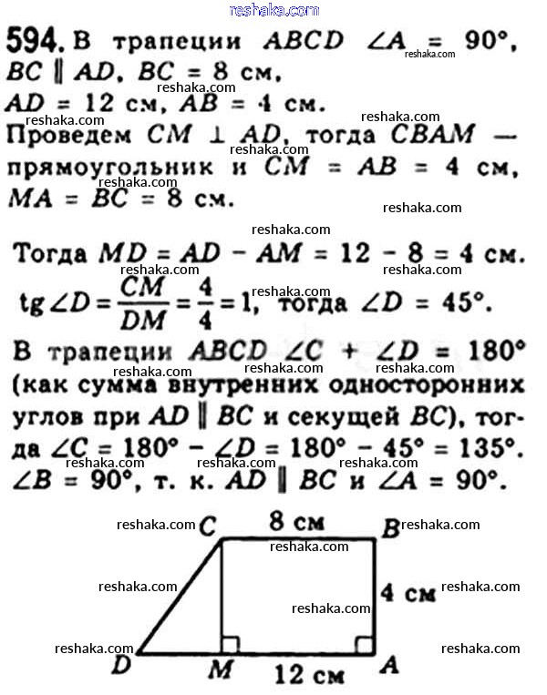 Решака - онлайн ответы Геометрия Мерзляк, Полонский за 8 класс Учебник ФГОС 2015 - 594