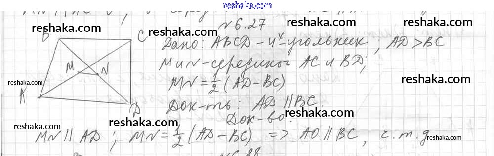 Представляем вам сборники по Геометрии, с готовыми ответами к Учебнику Мерзляк школьной программы для учеников восьмой класса. Это не просто гдз с ответом, а с подсказками, как верно решить § 6. Средняя линия треугольника Глава 1. Многоугольники. Четырехугольники 27. Проверяй домашку с умом и получай высший балл!