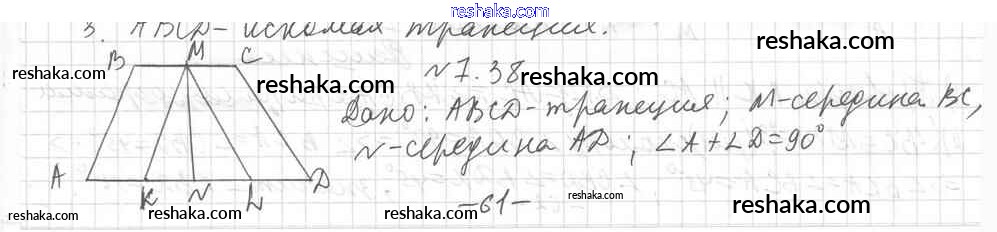 Представляем вам сборники по Геометрии, с готовыми ответами к Учебнику Мерзляк школьной программы для учеников восьмой класса. Это не просто гдз с ответом, а с подсказками, как верно решить § 7. Трапеция Глава 1. Многоугольники. Четырехугольники 38. Проверяй домашку с умом и получай высший балл!