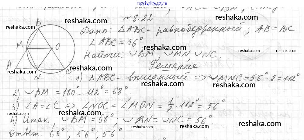 Представляем вам сборники по Геометрии, с готовыми ответами к Учебнику Мерзляк школьной программы для учеников восьмой класса. Это не просто гдз с ответом, а с подсказками, как верно решить § 8. Центральные и вписанные углы Глава 2. Вписанные и описанные четырехугольники 22. Проверяй домашку с умом и получай высший балл!