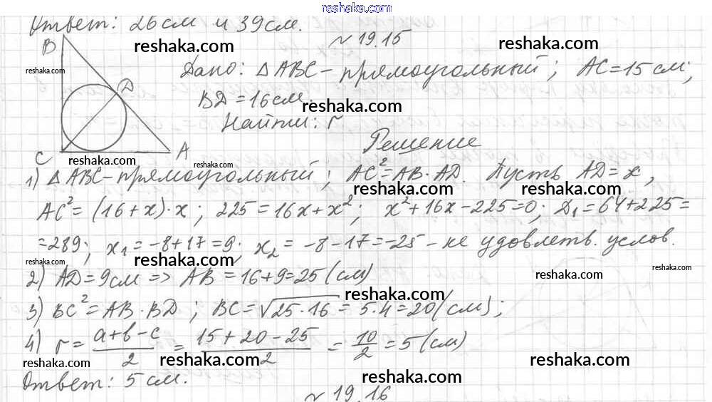 Представляем вам сборники по Геометрии, с готовыми ответами к Учебнику Мерзляк школьной программы для учеников восьмой класса. Это не просто гдз с ответом, а с подсказками, как верно решить § 19. Метрические соотношения в прямоугольном треугольнике Глава 4. Решение прямоугольных треугольников 15. Проверяй домашку с умом и получай высший балл!