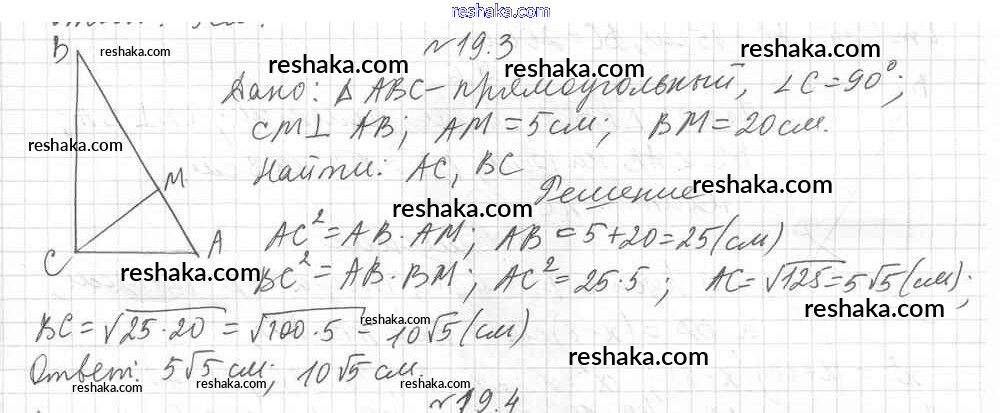 Представляем вам сборники по Геометрии, с готовыми ответами к Учебнику Мерзляк школьной программы для учеников восьмой класса. Это не просто гдз с ответом, а с подсказками, как верно решить § 19. Метрические соотношения в прямоугольном треугольнике Глава 4. Решение прямоугольных треугольников 3. Проверяй домашку с умом и получай высший балл!
